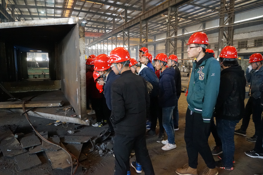 今天上午,材料科學(xué)與工程學(xué)院師生一行來(lái)到金環(huán)建設(shè)集團(tuán)有限公司石家莊制造公司生產(chǎn)廠房和車(chē)間,人力資源部耿子烜向師生們介紹了金環(huán)建設(shè)集團(tuán)的總體概況、分公司情況、公司資質(zhì)和公司近年的主要業(yè)績(jī);生產(chǎn)部苗文剛在車(chē)間結(jié)合生產(chǎn)設(shè)備和生產(chǎn)線上正在制作的構(gòu)件,給師生們?cè)敿?xì)講解了鋼結(jié)構(gòu)構(gòu)件的所用材料、生產(chǎn)工藝、生產(chǎn)流程、操作規(guī)程和安全事項(xiàng)等等知識(shí)和常識(shí)。師生們表示,通過(guò)本次參觀見(jiàn)學(xué),拉近了課堂與工廠、理論與實(shí)踐的距離,了解了行業(yè)最新發(fā)展信息,增強(qiáng)了學(xué)生們畢業(yè)后參加社會(huì)工作實(shí)踐的信心。