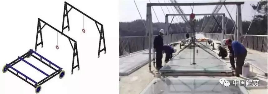 ▲玻璃橋面板運(yùn)輸裝置