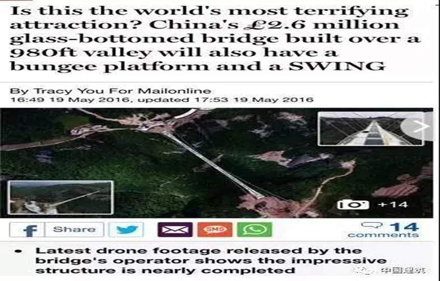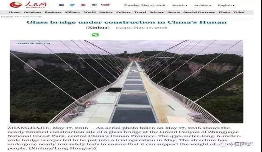 ▲人民網(wǎng)“中國(guó)湖南在建的玻璃橋”