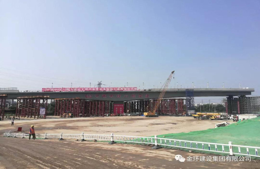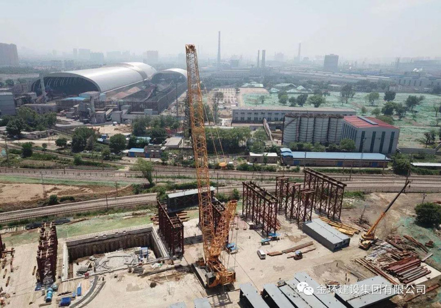 新店街建設(shè)工程是山西省太原市重點市政工程。該工程的建設(shè)將進(jìn)一步優(yōu)化提升太原市城區(qū)路網(wǎng)結(jié)構(gòu),打通城區(qū)北部東西向快速通道,完善城市北部功能、提升城市品質(zhì),形成以太原為中心的一小時經(jīng)濟圈,帶動沿線地區(qū)土地開發(fā),促進(jìn)太原市經(jīng)濟發(fā)展、城市現(xiàn)代化建設(shè)以及推動城市社會經(jīng)濟快速發(fā)展均具有重要意義。金環(huán)建設(shè)集團(tuán)橋梁公司承建本工程中新店街主線跨越鐵路線鋼箱梁T構(gòu)轉(zhuǎn)體橋施工是首個控制性節(jié)點工程。