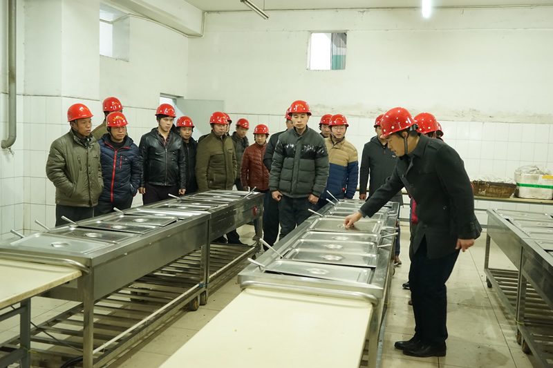 金環(huán)建設(shè)集團(tuán)生產(chǎn)部苗文剛主任全程負(fù)責(zé)安排參觀。介紹了公司的基本情況、生產(chǎn)加工的基本工藝、操作流程、質(zhì)量標(biāo)準(zhǔn)、工藝要求、安全事項等,參觀了備料、輕一、輕二、重一、重二、重三等生產(chǎn)車間,現(xiàn)場解答了學(xué)員提出的各種問題以及他們所關(guān)心的薪酬待遇等問題。喬銘、耿濤帶實習(xí)學(xué)員參觀了公司外圍情況,到員工食堂參觀了自助餐現(xiàn)場。