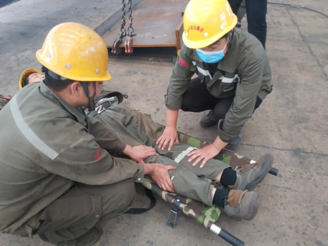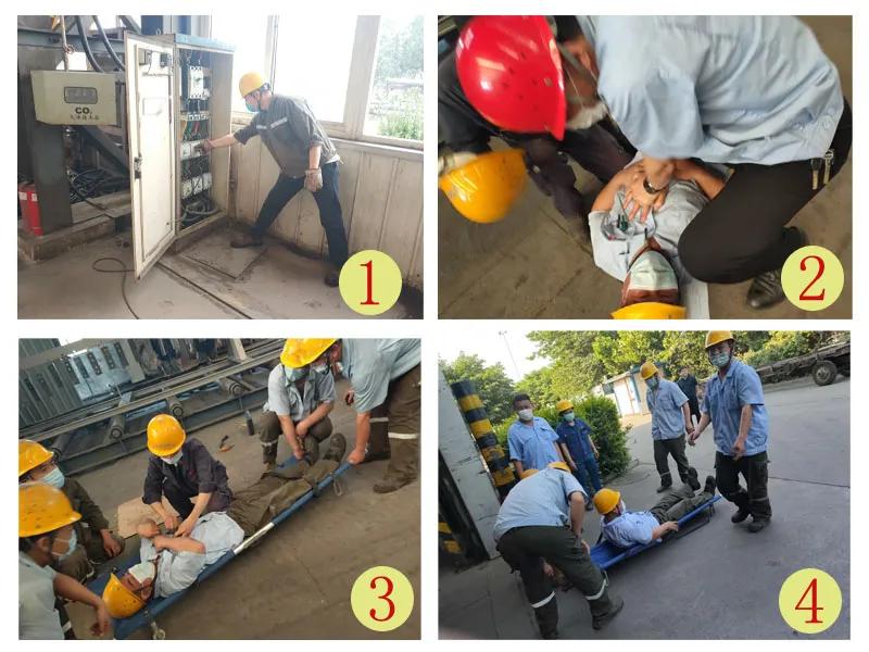 第四部:使用擔(dān)架抬至車(chē)間門(mén)口,如有外傷進(jìn)行簡(jiǎn)單包扎,120送至醫(yī)院救治。