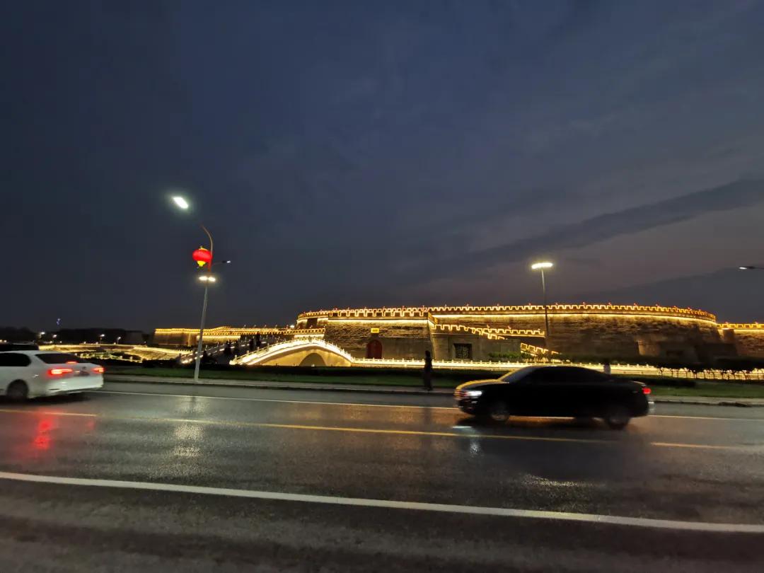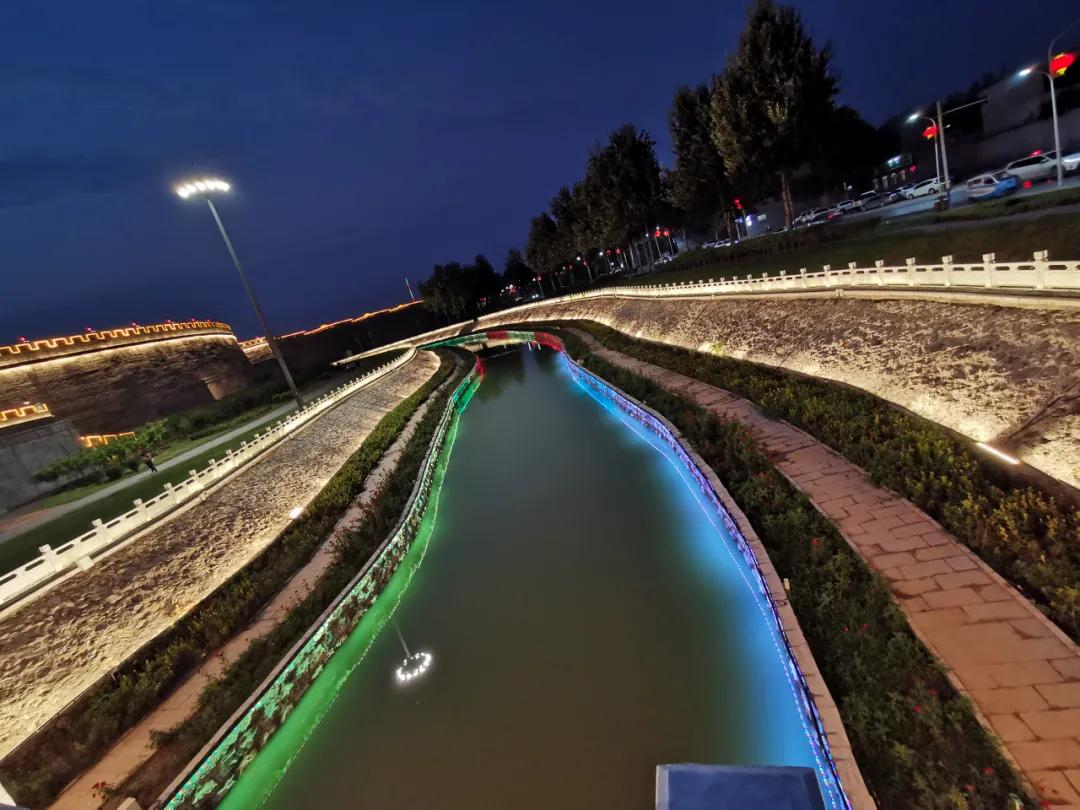 城墻、城樓、護(hù)城河上閃爍起靈動(dòng)的燈光,