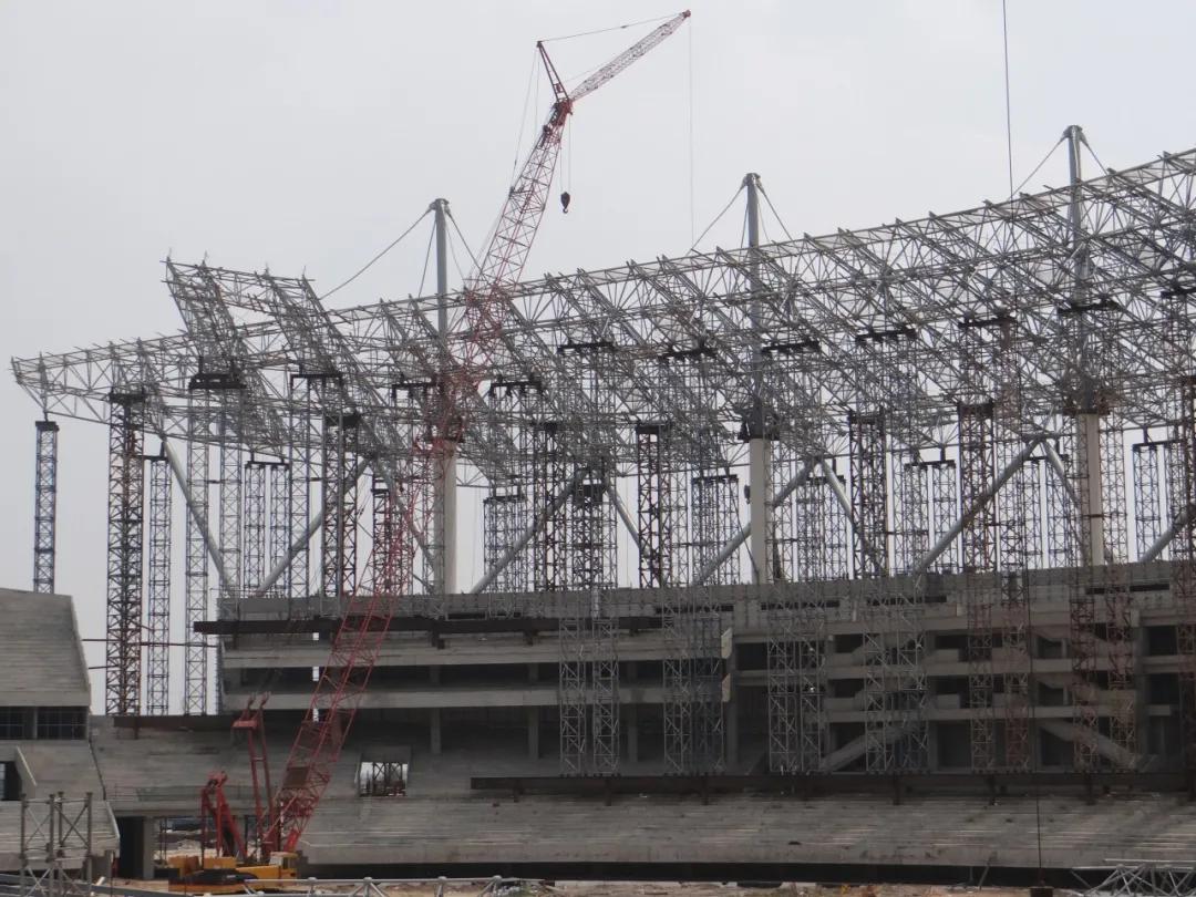 2014年,金環(huán)建設(shè)集團(tuán)作為該體育場鋼結(jié)構(gòu)制造和施工單位,全面承建了主體、大看臺、小看臺罩棚等鋼結(jié)構(gòu)工程(制作、安裝)工作。金環(huán)人發(fā)揮在國內(nèi)外項(xiàng)目中的豐富經(jīng)驗(yàn),強(qiáng)化現(xiàn)場管理,精心組織施工,嚴(yán)格對標(biāo)建設(shè)要求標(biāo)準(zhǔn),將河北奧體中心體育場打造成城市新的體育娛樂中心。