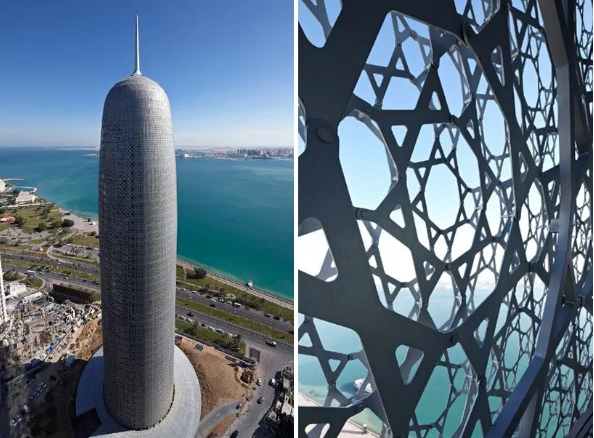 卡塔爾地標性建筑,金環(huán)負責制作安裝了大廈的筒體編織柱鋼結(jié)構(gòu)穹頂。