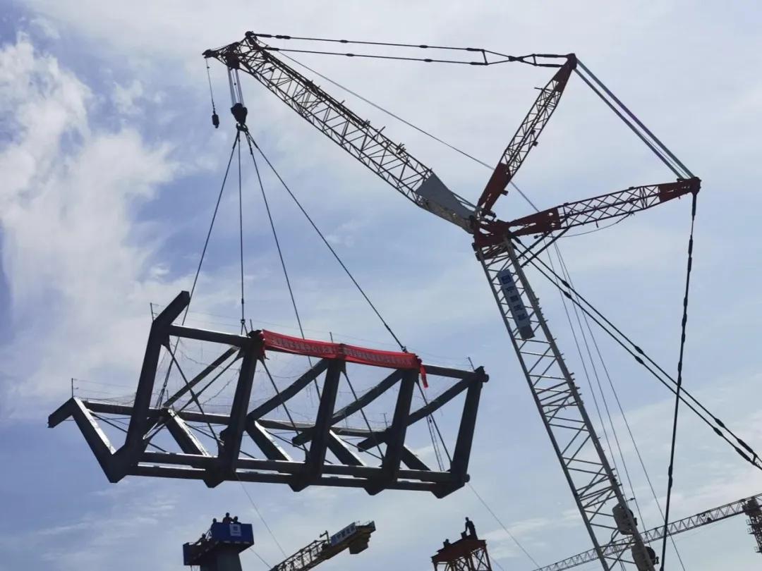 8月10日,該項目鋼結(jié)構(gòu)首吊儀式在工地現(xiàn)場順利舉行。當(dāng)天首吊的這根鋼結(jié)構(gòu)就是來自金環(huán)建設(shè)集團的生產(chǎn)制造。這根長24米、寬15.7米、高6.6米、重68噸的屋面桁架的成功吊裝,作為會展中心二期項目建設(shè)重要的里程碑節(jié)點,標志著項目進入全面快速建設(shè)階段。