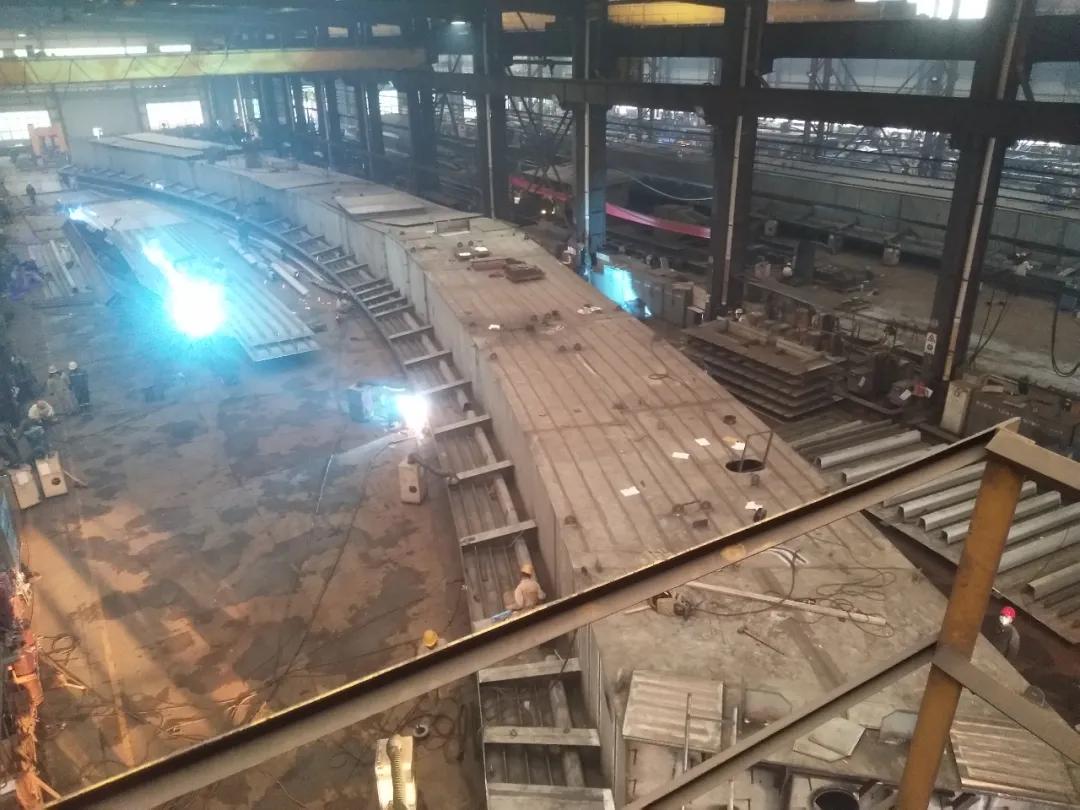 技術(shù)部及詳圖部投入全部精力,分工合作,加班加點(diǎn),分步分塊下發(fā)圖紙,解決了“單幅變?yōu)殡p幅”等關(guān)鍵技術(shù)問題,最終總裝合成鋼箱梁,為生產(chǎn)環(huán)節(jié)的順利開展打下了堅實(shí)的基礎(chǔ)。