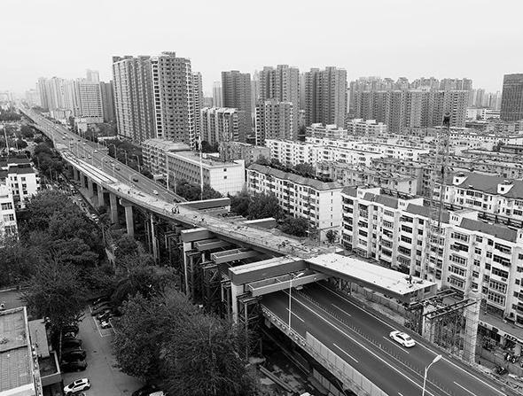 ▼槐安路橋段施工北側(cè)緊鄰居民區(qū)