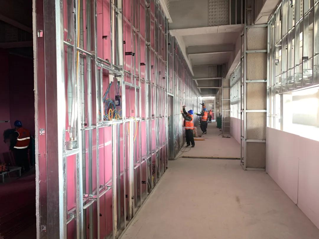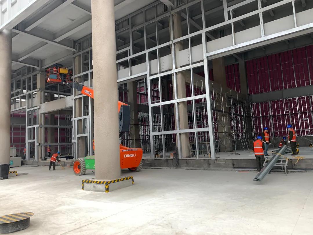 目前項目現(xiàn)場的鋼結(jié)構(gòu)主體已全部安裝完成,正在進行檁條及外墻板安裝。