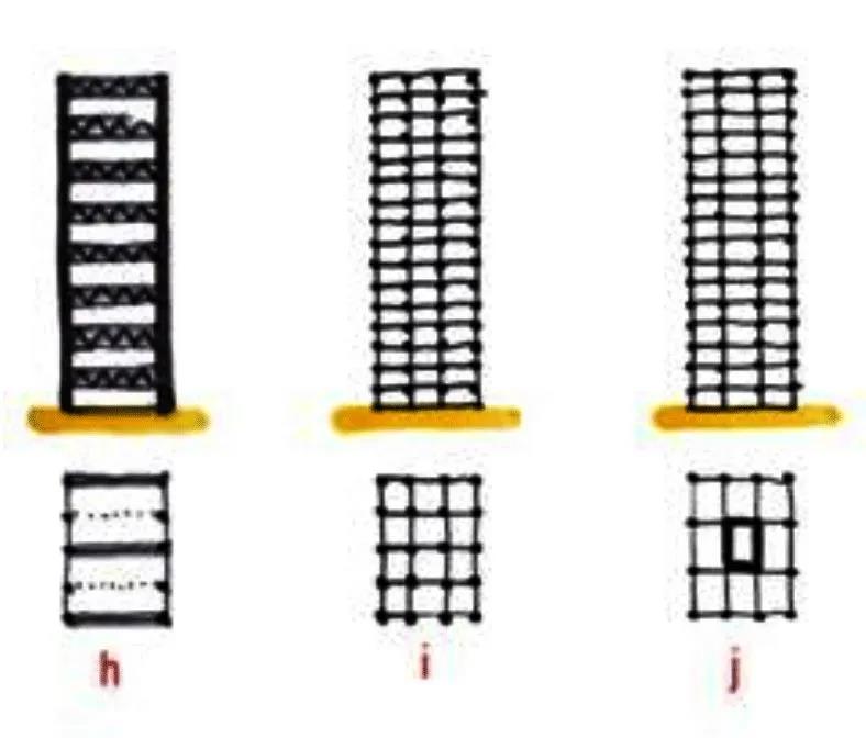 從整體上看,在豎向平面上,每隔一層設(shè)置桁架;在橫向平面上,相鄰框架的桁架在上下層間交錯(cuò)布置,這就是我們說(shuō)的“交錯(cuò)桁架鋼結(jié)構(gòu)體系”。