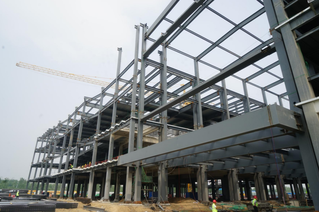 項(xiàng)目自2021年3月1日正式開工建設(shè),從生產(chǎn)制造車間到施工現(xiàn)場,金環(huán)建設(shè)集團(tuán)全體建設(shè)者們克服工程體量大、工期緊張等挑戰(zhàn),充分發(fā)揚(yáng)團(tuán)結(jié)拼搏、迎難而上的精神,密切配合、爭分奪秒、加班加點(diǎn)地推進(jìn)鋼結(jié)構(gòu)制造,以及現(xiàn)場施工的各項(xiàng)工作,加速推進(jìn)各項(xiàng)工作高質(zhì)量、穩(wěn)步開展。