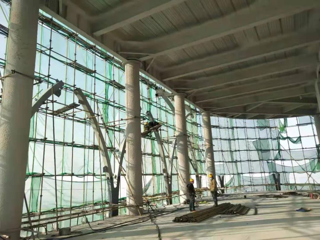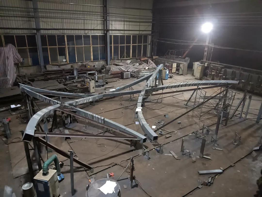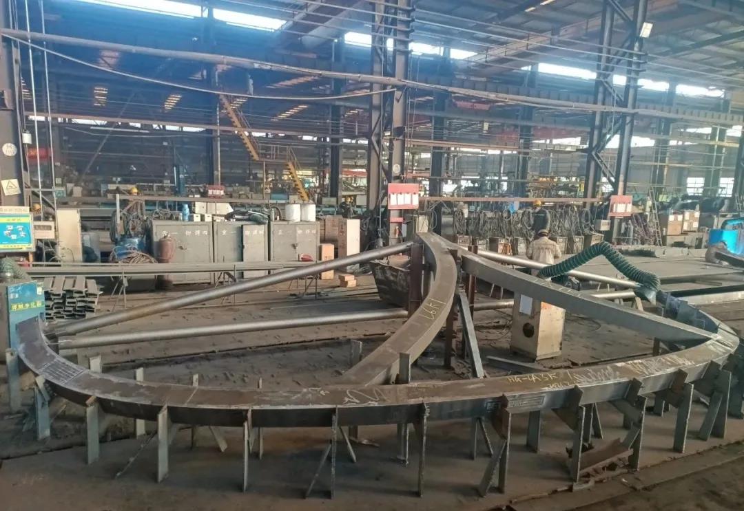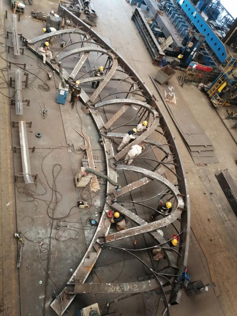 ▼塔冠車間預(yù)拼接現(xiàn)場