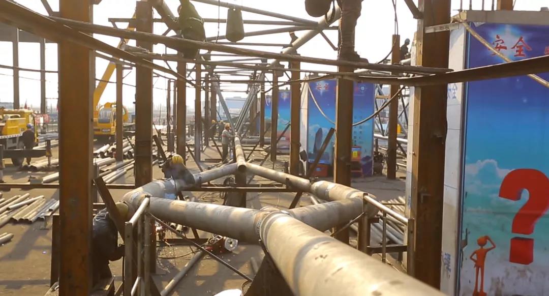 主體結構多為管桁架、格構柱,圓管切割方式為相貫線切割下料。為保證焊接質量現(xiàn)場焊接采用二氧化碳保護焊,采用全數(shù)字超聲探傷儀進行全熔透焊縫檢測。