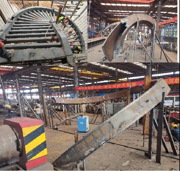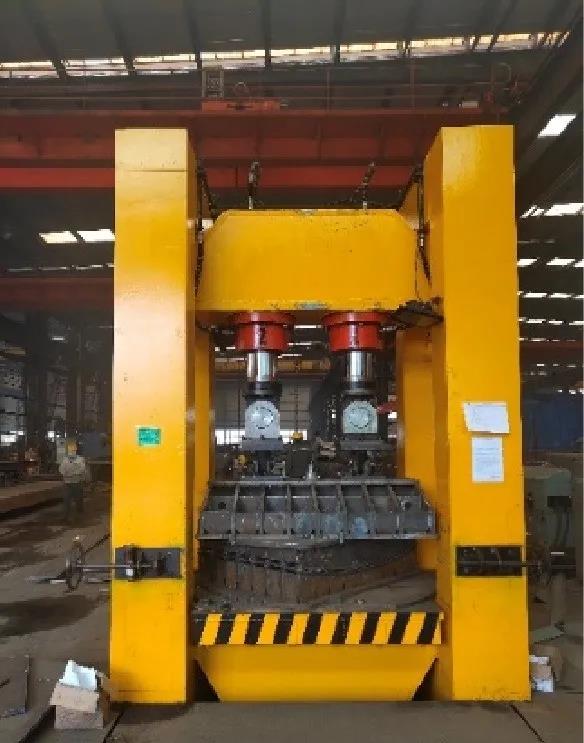 公司利用相關技術,研制了640噸雙頭裝配式轉(zhuǎn)模壓力機設備荷載產(chǎn)生壓力為320噸/缸*2缸。設備適應于壓制空間扭曲箱型鋼結構或空間扭曲焊接異型鋼結構的640噸雙頭轉(zhuǎn)模壓力機,能滿足板材加工范圍為:板材寬度在400~1500mm,板材厚度在3~40mm,板材長度不限,板材壓制弧度不限的施工設備裝置。
