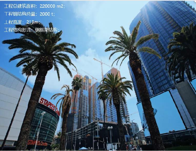 ▲圖為金環(huán)承建美國洛杉磯體育場項目,洛杉磯體育場上部屋蓋為大跨度張弦結構,屋頂東西長538m,寬287m;中間拉索空間長軸為306m,短軸為235m;屋蓋面積約20萬平方米。該項目屋蓋結構造型較為復雜,屋頂結構由扭曲構件組成的空間殼體結構和中部空間拉索結構組成。結構的現(xiàn)場安裝以高強螺栓連接為主,構件加工精度要求較高。