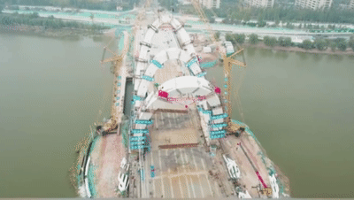 金環(huán)承建 | 徒駭河上“蓮花”綻放!興華路徒駭河大橋項目鋼塔順利合龍