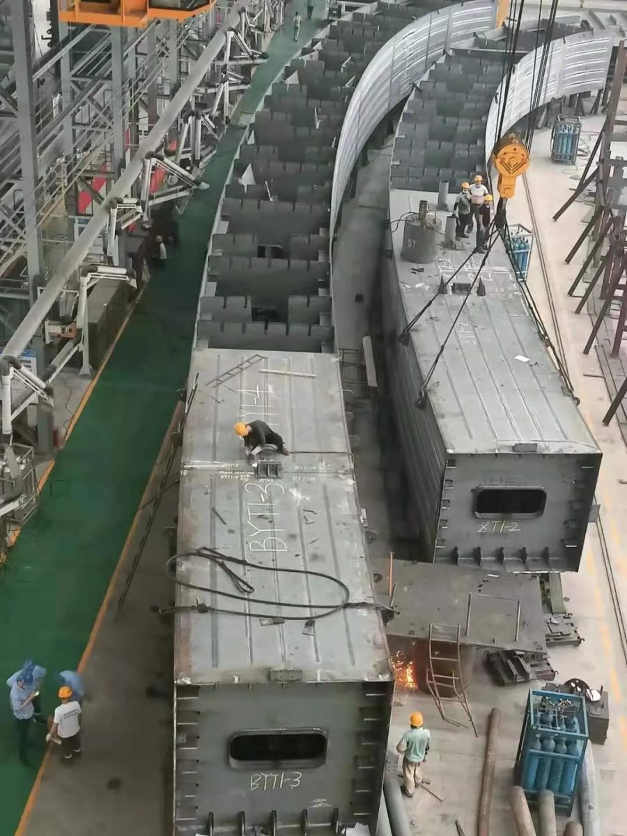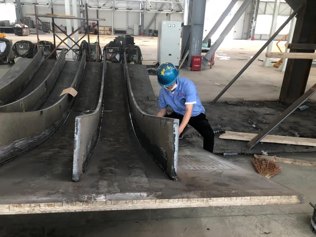 3。全熔透焊縫多,厚板拼接焊縫多,焊接操作空間小,焊接難度大。制造公司總經(jīng)理張強總親自進(jìn)行焊接示范指導(dǎo),技術(shù)人員和車間制造人員針對不同難點共同商議探討最合理的解決方案,采取多種技術(shù)工藝措施,實現(xiàn)了鋼塔焊縫的高質(zhì)量控制。