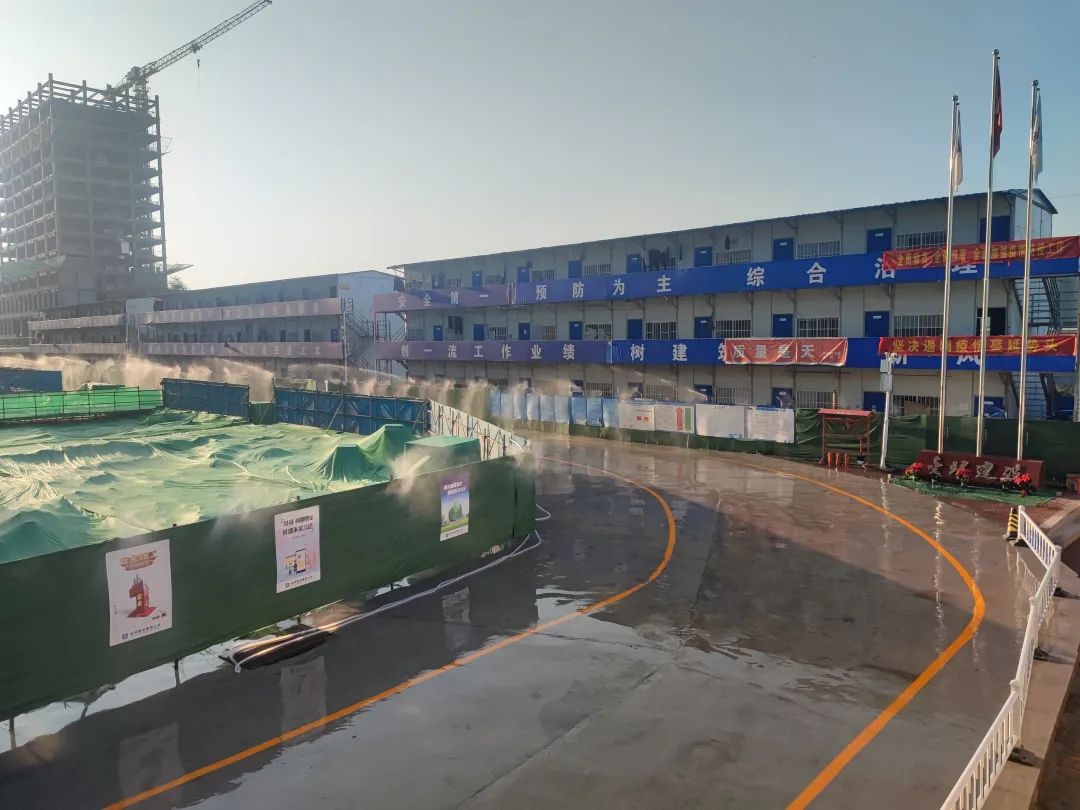 項(xiàng)目設(shè)置了整潔美觀的封閉圍擋,自動(dòng)化車輛沖洗設(shè)備,主要道路設(shè)置硬化處理,裸土采用防塵網(wǎng)全部覆蓋,現(xiàn)場(chǎng)配置灑水車以確保環(huán)保達(dá)標(biāo)。由于揚(yáng)塵治理工作突出,項(xiàng)目部還被評(píng)為揚(yáng)塵治理標(biāo)準(zhǔn)化工地。
