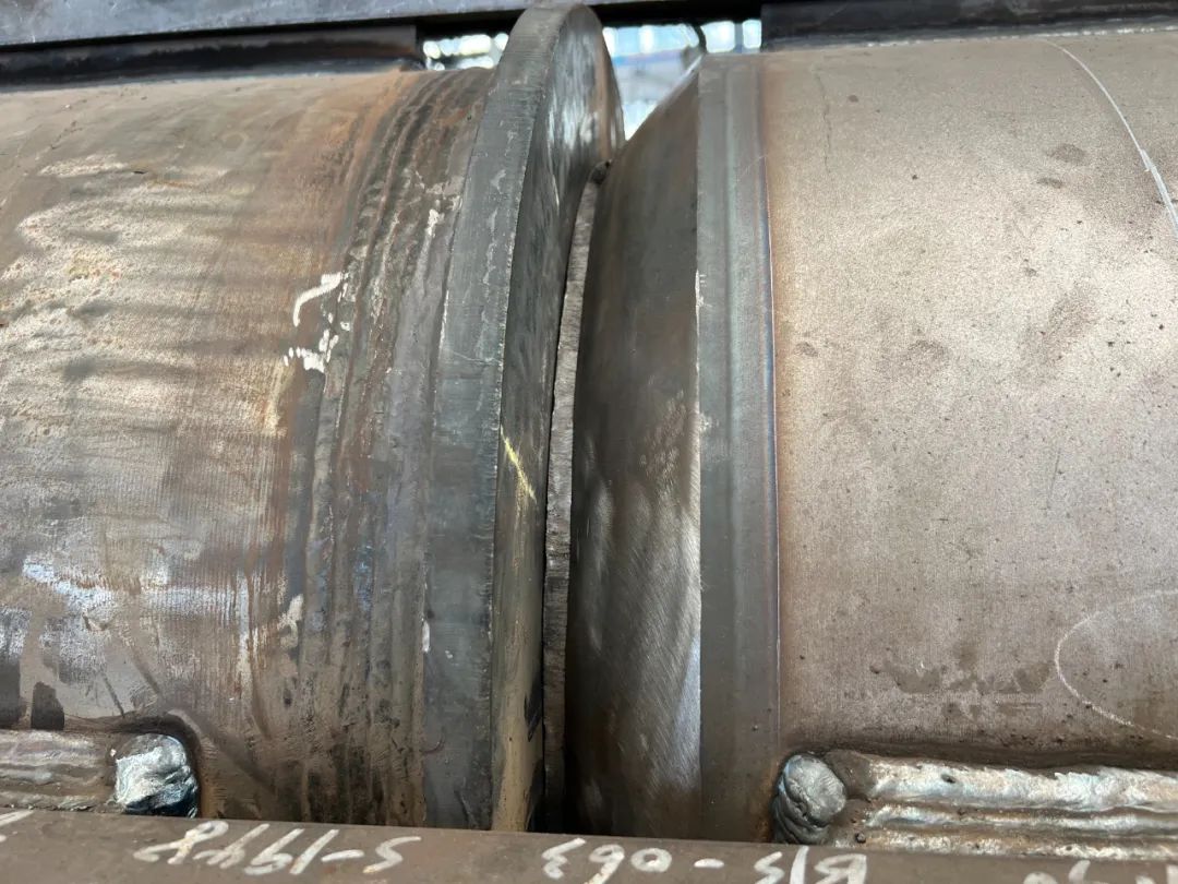 ▼預(yù)拼裝:為確保加工精度,在車間現(xiàn)場進(jìn)行軸線和分片預(yù)拼裝。