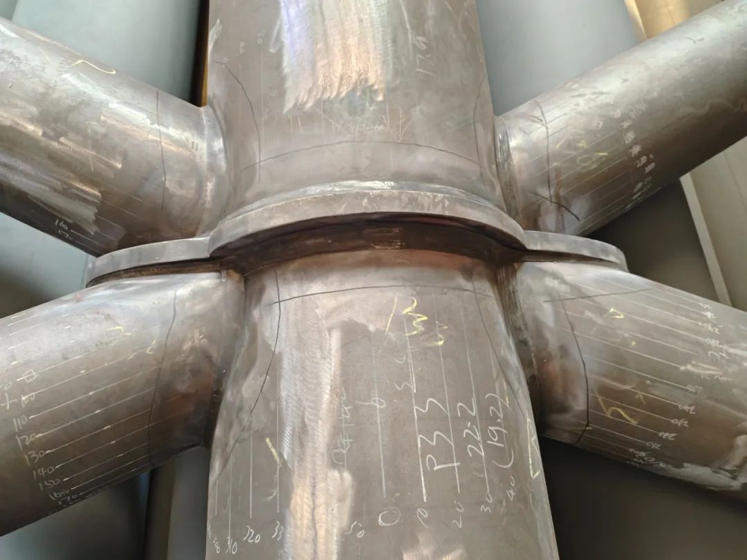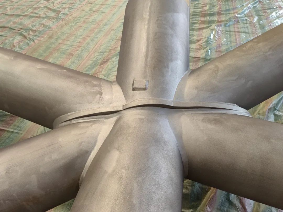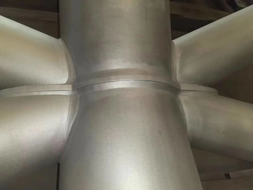 ▼噴砂除銹:嚴(yán)格按照規(guī)范要求進(jìn)行噴砂除銹。下圖為AESS構(gòu)件除銹后的完成效果,可以看到,構(gòu)件表面光滑亮澤,連接節(jié)點(diǎn)平整順滑,整個構(gòu)件渾然一體,幾乎看不到焊縫的存在。