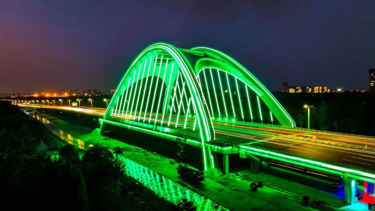 泊水公園特大橋是石家莊市復(fù)興大街市政化改造項目的控制性工程之一,跨越泊水公園環(huán)城水系,全長1111米,其中主橋為1-130米中承式鋼箱拱橋,主拱跨徑117米,為六邊形鋼箱結(jié)構(gòu),拱高48.51米。金環(huán)承建該橋梁主橋鋼拱和橋面鋼箱梁制作和安裝工作,累計用鋼量5600余噸。