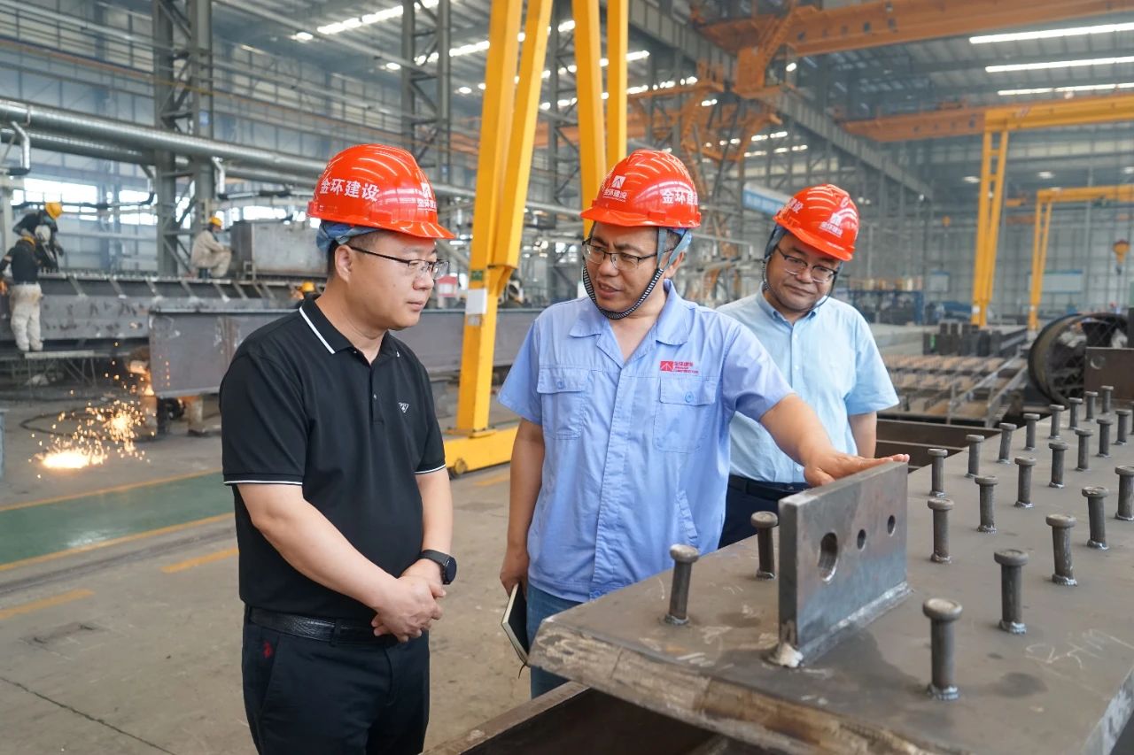 在金環(huán)建設集團石家莊工廠,常海君會長和張義昆書記認真細致地查看了車間生產組織情況、構件焊接質量、特色設備等,對構件的加工質量表示了高度的認可和好評,肯定了企業(yè)從上到下“以質量立企”、“走品質和品牌”的發(fā)展理念,并鼓勵企業(yè)繼續(xù)堅持質量路線,成為行業(yè)規(guī)范化和產品品質提升的引領者。
