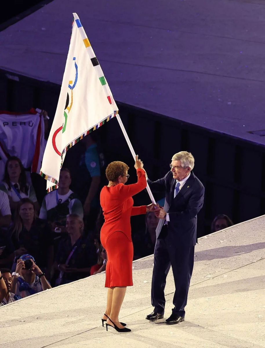 最后將會(huì)旗帶到了2028年奧運(yùn)會(huì)主辦地,