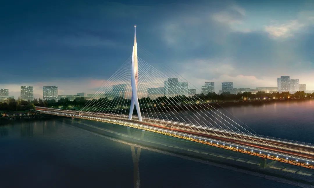 瀟河橋上的靈動舞者!高難度弧形橋塔再展金環(huán)技術(shù)水平