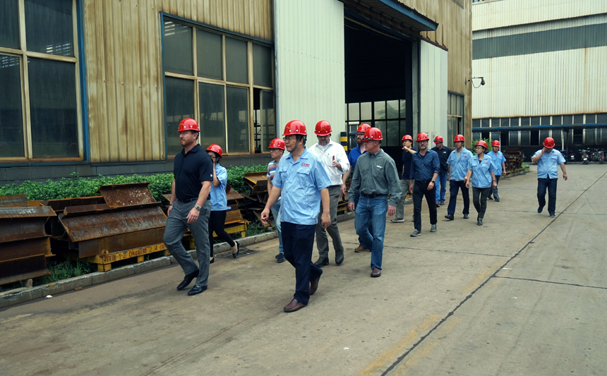 8月29日,由美國The Herrick Corporation公司、AECOM Hunt公司、Turner Construction Company公司、Water P. Moore公司、SchlaichBergermann and Partner公司、DBM Global公司、Schuff Steel公司組成的參觀考察團蒞臨金環(huán)