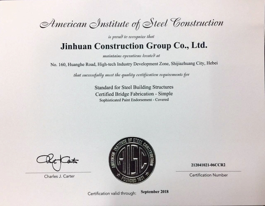 近日,我公司成功獲得美國鋼結(jié)構(gòu)協(xié)會(AISC)頒發(fā)的認證證書,認證范圍包含建筑鋼結(jié)構(gòu)(Steel Building Structures)認證,以及橋梁(Bridge Fabrication)認證等范圍。這是自2015年連續(xù)第3年獲